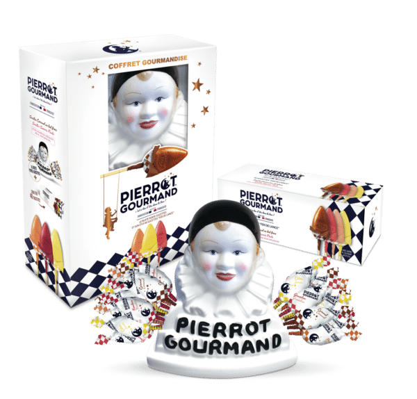 Le sourire rêveur de Pierrot Gourmand s’invite dans tous les foyers, grâce à ce coffret inédit. Un cadeau d’exception à offrir à ceux que vous aimez pour célébrer les petits bonheurs comme les grands évènements, ou tout simplement pour savourer vos sucettes préférées à chaque fois que survient l’envie d’un moment de douceur.